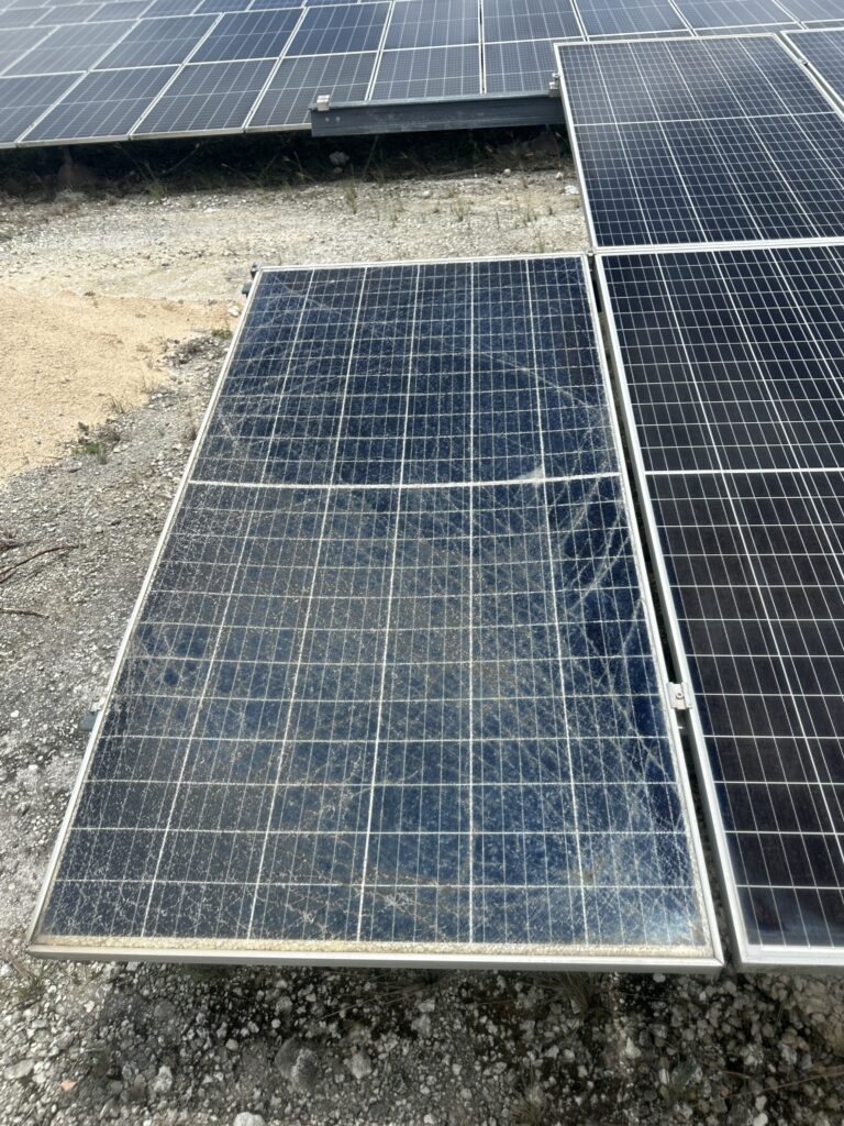 Solución aplicada: Se utilizó el producto Chemitek Metal Removal Agent (MRA) aplicado de forma localizada en las zonas afectadas, respetando los tiempos de actuación indicados. Posteriormente, se ejecutó una limpieza robótica con el Robot SolarCleano F1, utilizando cerdas adaptadas para tratar residuos incrustados sin afectar la superficie del módulo.